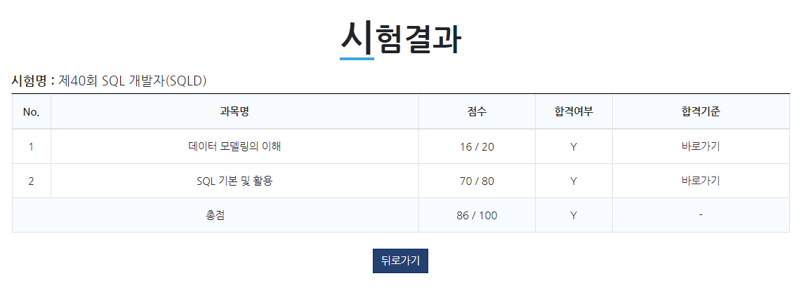3월 20일에 치뤘던 제40회 SQL 개발자(SQLD) 시험 결과가 드디어 나왔다.