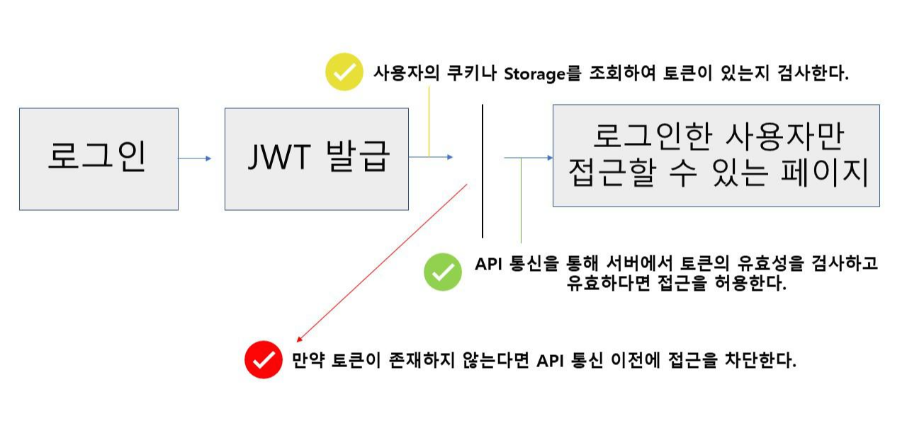 | Private Route | - | 로그인한 상태에서만 접근 가능: 마이 페이지 | 로그인 페이지 |