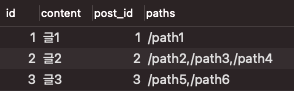 | ID | POST_ID(FK) | PATH |