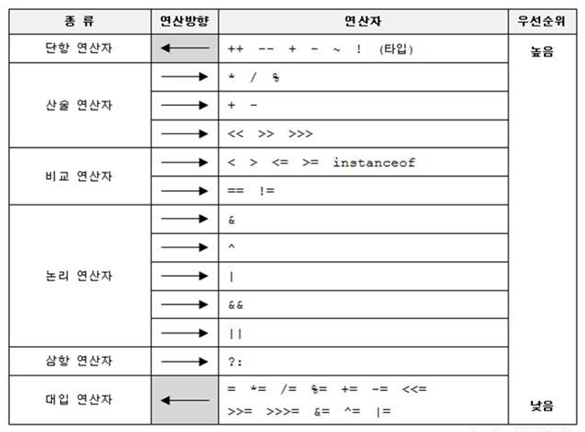 | 기타 | (type) ? : instanceof | 형변환 연산자, 삼항 연산자, instanceof연산자 |
