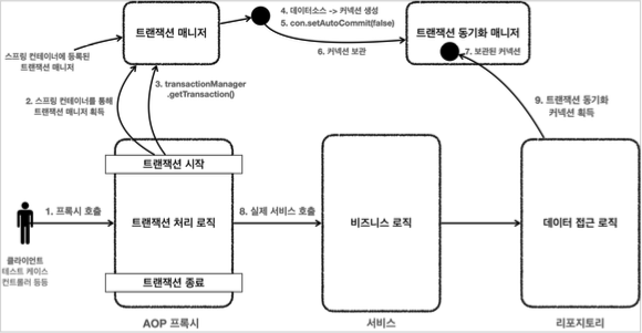 3. AOP 프록시 -> 트랜잭션 매니저: 트랜잭션을 시작