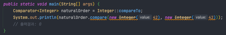 - 실제로 위 예제에서 메서드 참조 대신 Comparator.naturalOrder()를 넣어도 올바르고 작동한다!