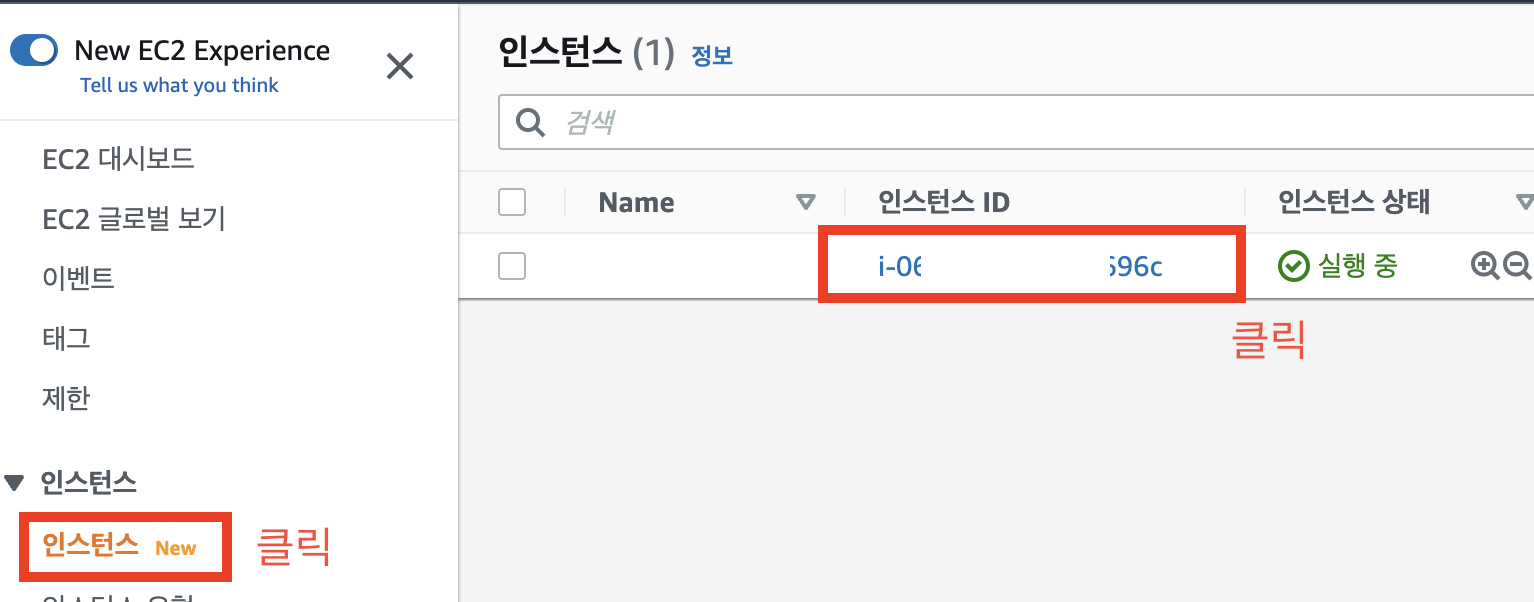 1) EC2 > 인스턴스 > 인스턴스 ID 클릭