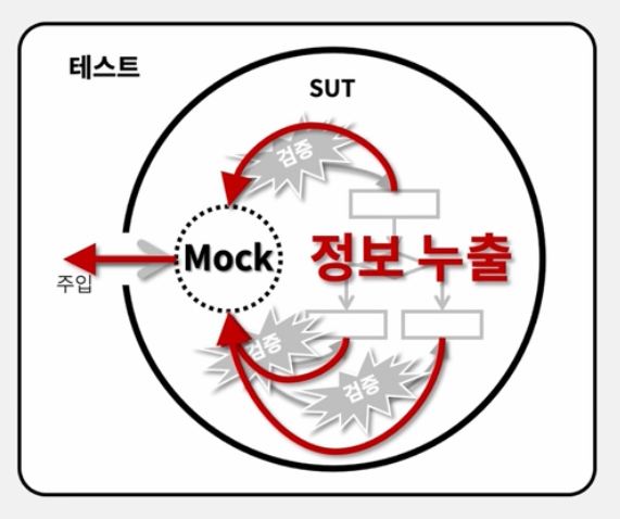 - Mock은 SUT 내부의 동작(구현)을 검증할 책임을 갖고 있다