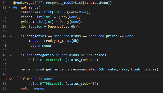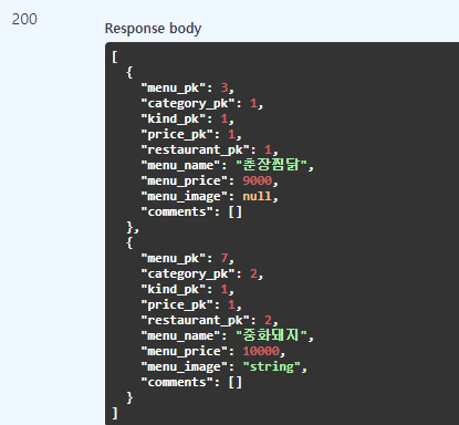 - 선택한 조건에 따라 해당되는 메뉴들만 반환받고자 한다.