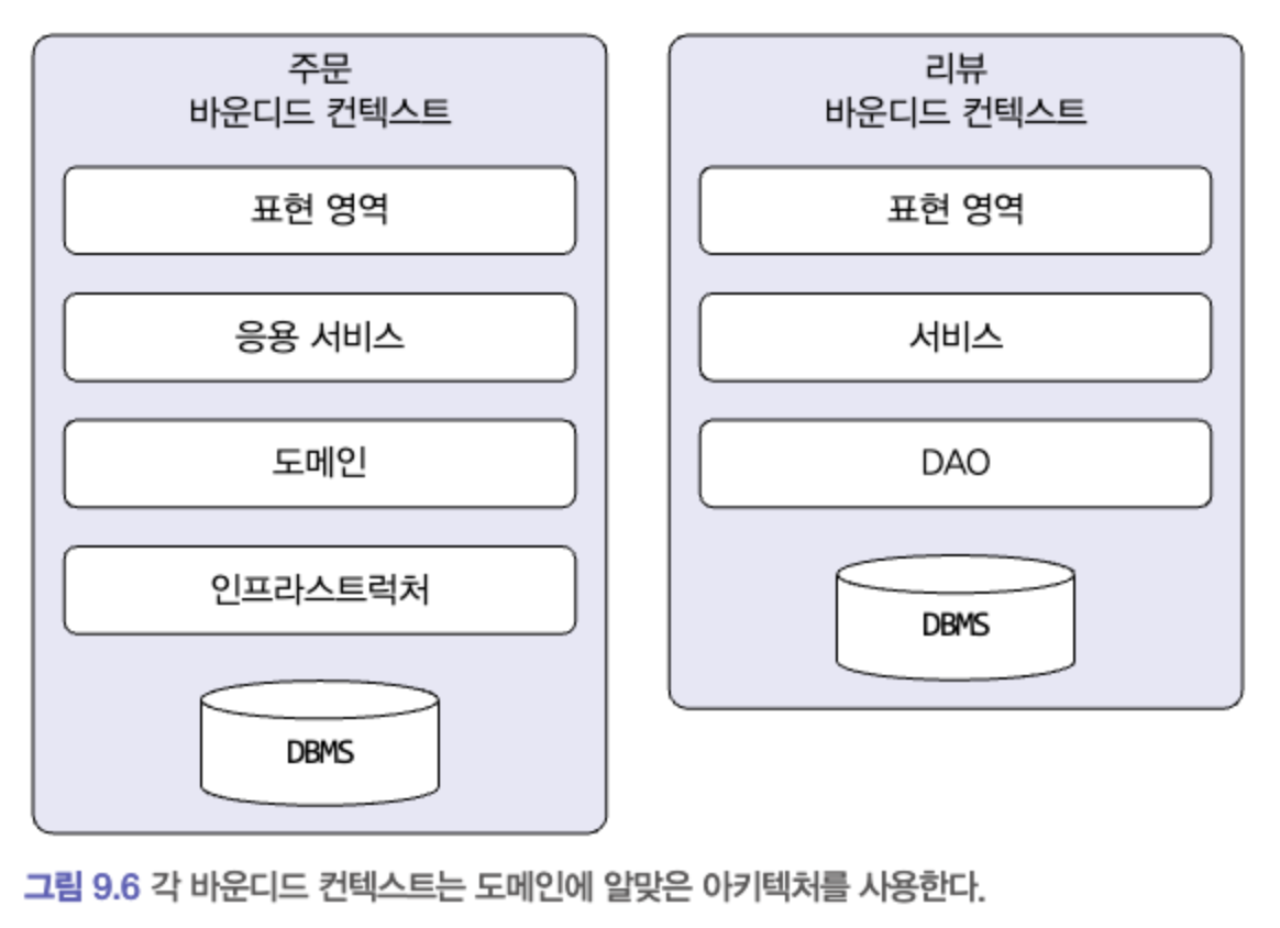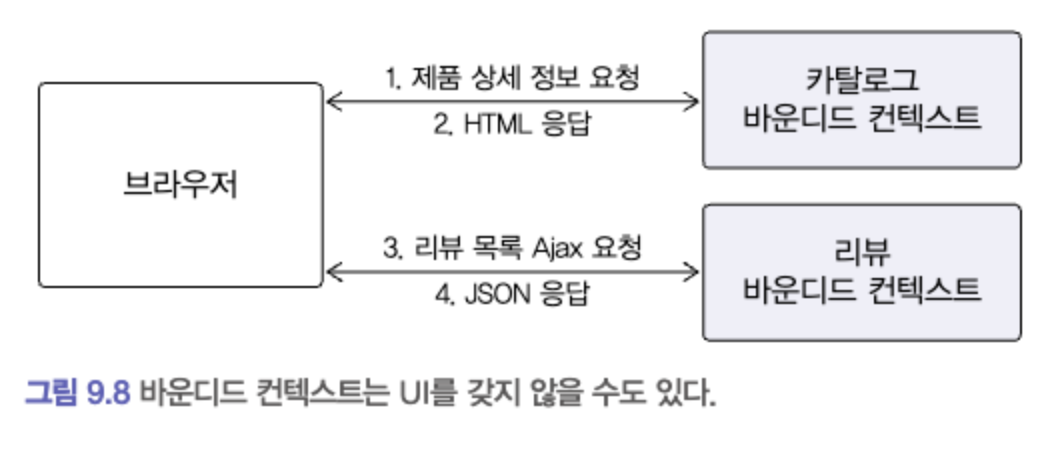 - 바운디드 컨텍스트가 반드시 사용자에게 보여지는 UI를 가지고 있어야 하는 것은 아니다 (그림[9.8] 참고)