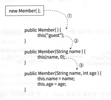 - 생성자는 기본적으로 new 명령문을 이용해 객체를 생성할 때 자동으로 호출되지만, 생성자 내에서 다른 생성자를 호출할 수도 있다