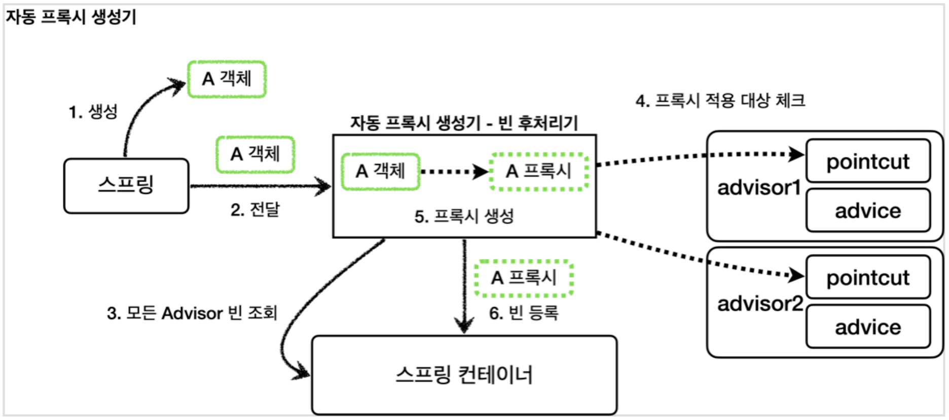- 자동으로 프록시를 생성해주는 빈 후처리기 (스프링부트에 자동으로 등록)