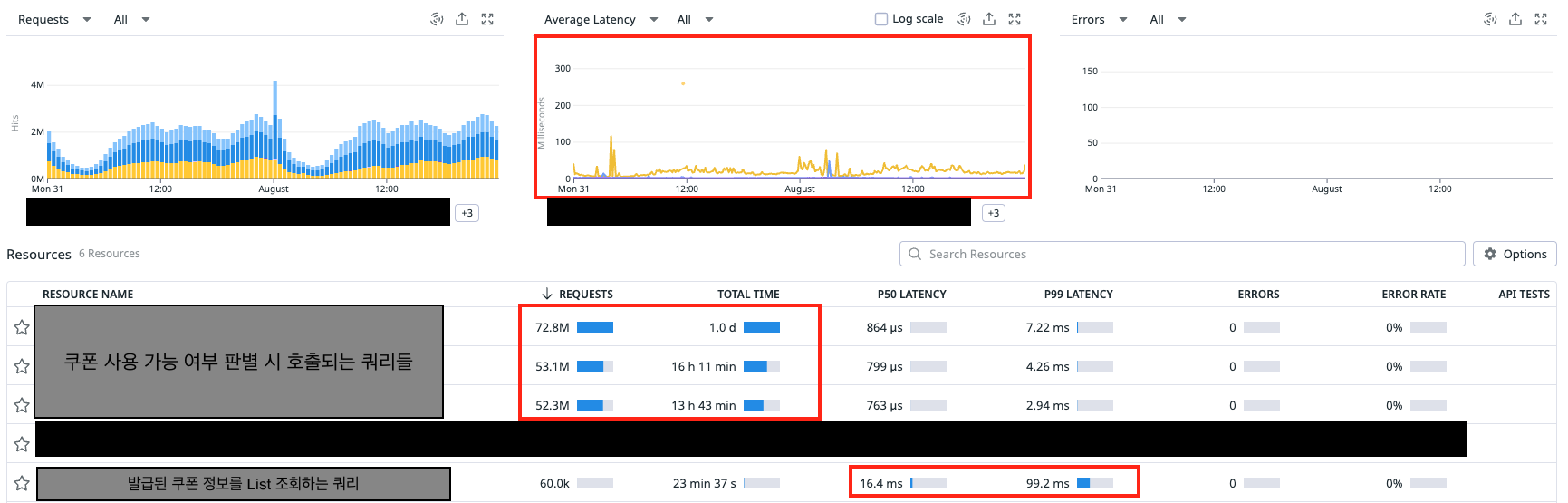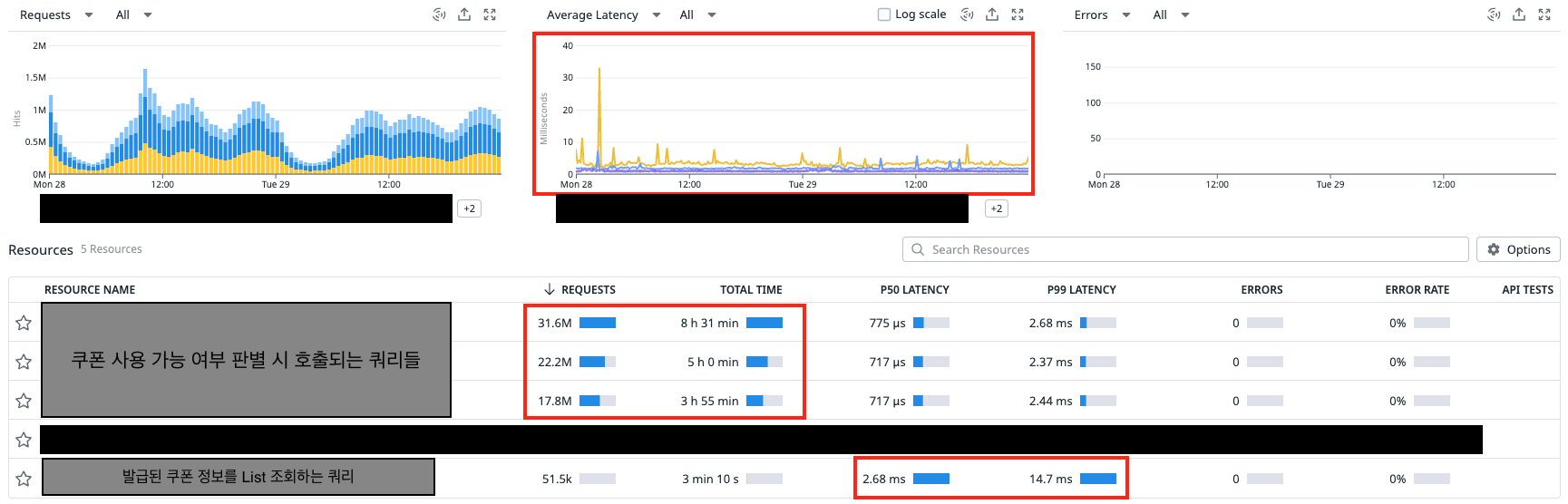 아무래도 쿠폰 정책보다는 발급된 쿠폰 데이터가 많다보니 관련한 쿼리/API에서 많은 개선이 이뤄진 것 같다.