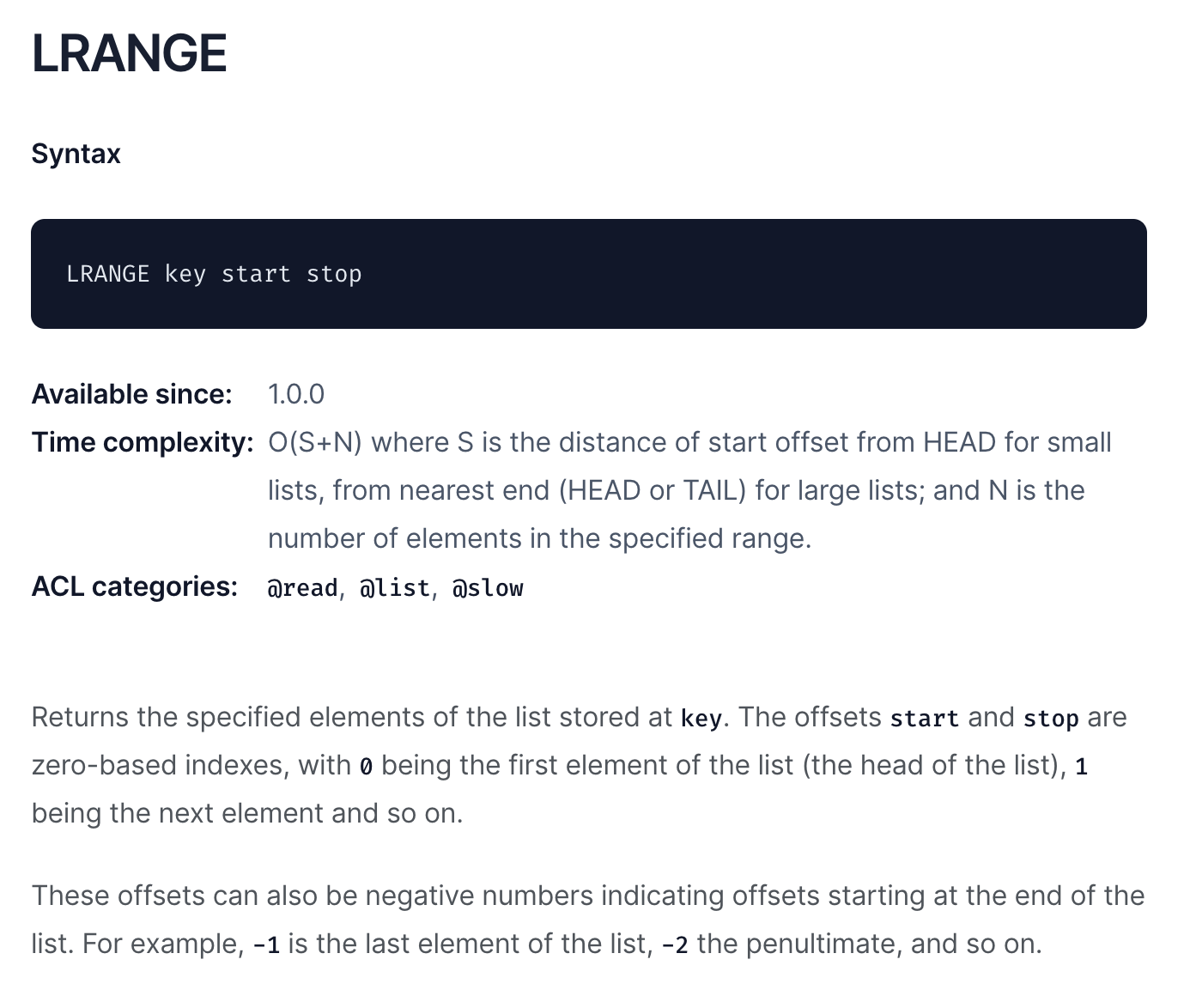 - List 타입에서 사용되는 연산으로, 특정 오프셋을 기준으로 데이터를 반환한다