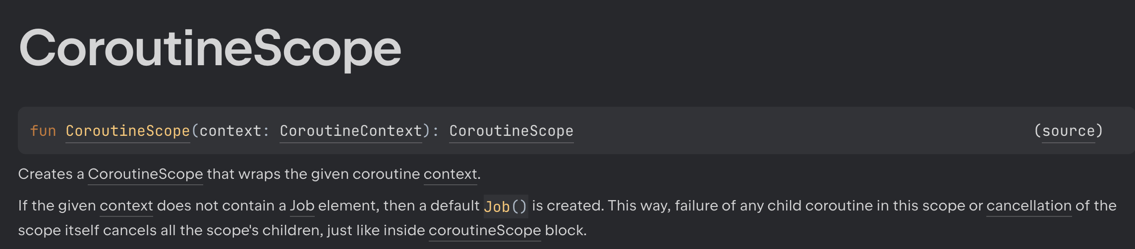 반면, CoroutineScope 함수는 블럭 내의 코루틴이 모두 완료될 때까지 기다리지 않는다.
