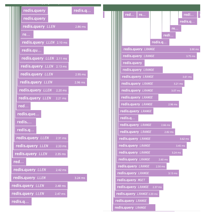 쿠폰적용가 API 내부적으로 상품별로 쿠폰의 사용 가/불가 여부를 리스트로 캐싱하고 있다. 이는 리스트에서 오래된 쿠폰을 밀어내는(pop) 형태로 동작하는데, 여기서 리스트의 현재 사이즈를 계산하기 위해 LLEN 연산이 호출되었다. 그리고 상품별 쿠폰 리스트의 요소들을 조회할 때 LRANGE 연산이 사용되었다. (이와 관련된 자세한 내용은 여기를 참고)