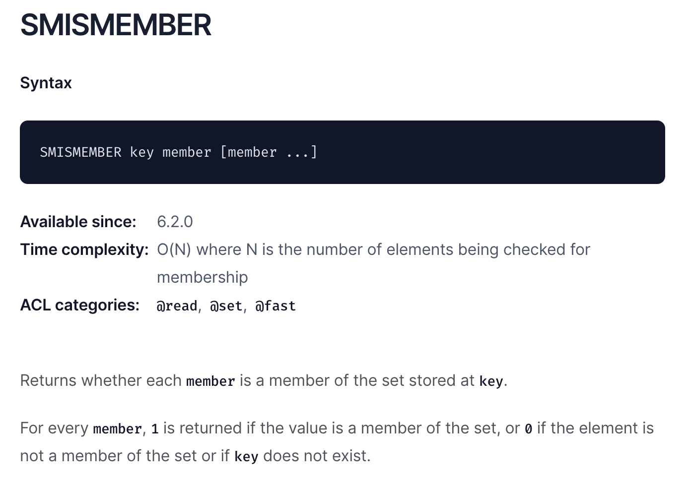 로컬 캐싱을 통한 성능적 이점은 분명 있었지만, 가용 쓰레드가 적어서 blocking 연산이 치명적인 Webflux의 특성상 제거하는 편이 좋겠다고 판단했다. 동시에 단건 조회 대신 다건 조회를 지원하는 SMISMEMBER라는 좋은 대체제가 있기에 로컬 캐싱 대신 레디스 상에서 다건 조회하는 방식으로 문제를 해결했다.