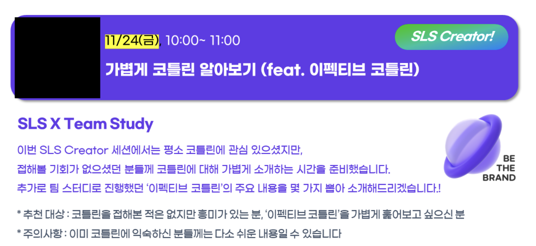 팀 스터디는 '이펙티브 코틀린' 책으로 진행했으므로 마땅히 주제도 이펙티브 코틀린이 되었어야 했으나.. 책의 구성상 한 시간 남짓의 세션에서 책의 내용을 온전히 녹여내기는 힘들다고 생각했다. 우리 회사는 C# 기반의 레거시가 굉장히 많은 회사이고, 최근엔 모두 자바로 프로젝트를 진행하고 있으나 코틀린을 주언어로 사용하는 팀은 우리 팀을 제외하고는 거의 없다. 이러한 점을 고려해봤을 때 어느 정도의 코틀린 실무 경험이 있어야 제대로 읽을 수 있는 이펙티브 코틀린에 대해 열심히 떠들어봤자 의미없는 일이었을 것이다. 따라서 기초적이면서도 꼭 알면 좋겠다 싶은 코틀린의 내용을 주로 다루되, 이펙티브 코틀린 각 장의 핵심 내용에 대해서 설명하고자 했다.