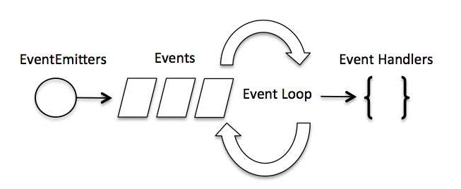 Node.js는 이벤트(Event)를 기반으로 비동식 방식으로 처리하기 때문에, 객체 간에 이벤트를 전달한다. Node.js를 기반으로 한 웹 서버는 이벤트를 대기하는 메인 루프가 있고, 이벤트가 감지되면 콜백함수를 호출하는 형태를 띈다.