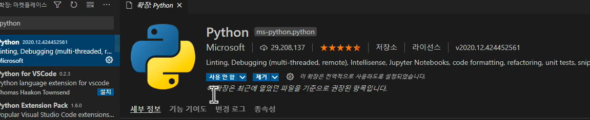 Extensions에 들어가 다음과 같은 확장 프로그램들을 설치한다.