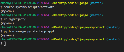시작하기에 앞서 장고 프로젝트에서 앱을 만들어야 한다.