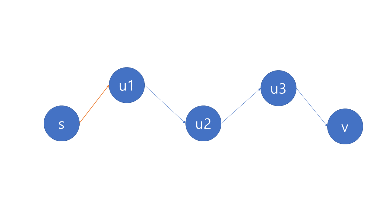- 만약 s ⇝ u → v 가 s에서 v로의 최단 경로 중 하나라면, s ⇝ u 역시 s에서 u까지의 최단 경로 중 하나이다.