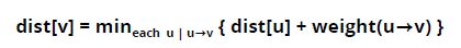 distance[v] = distance[u] + w[(u,v)] //그 거리를 v의 최단거리로 지정